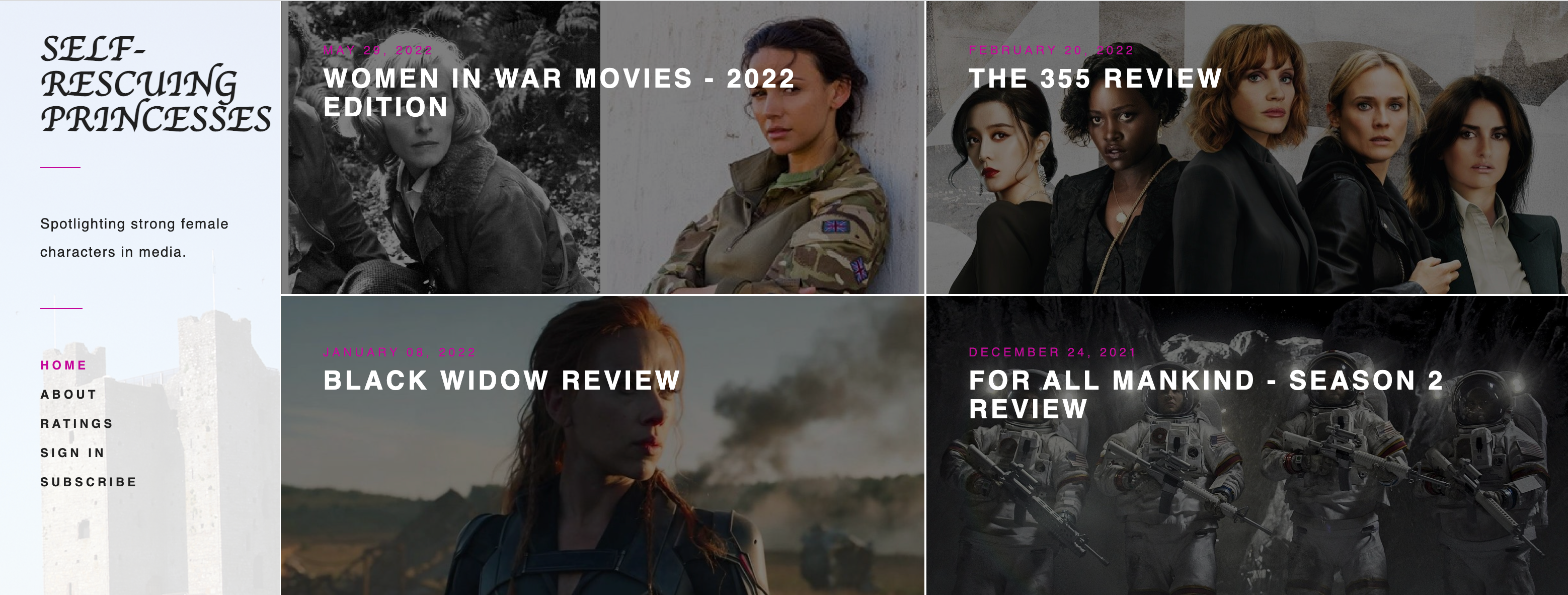 Since 2014, my blog Self-Rescuing Princesses has been spotlighting strong female characters in media, particularly in the action, sci-fi and fantasy genres.